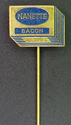 Keywords: Franco-Suisse Nanette bacon speldje blauw.JPG nl Reclame speldje van een oud Nederlands product of merk en Advertising pin of an old Dutch product or brand own 2016-12-15 18 35 07 Alf van Beem Trademarked Franco-Suisse advertising pins