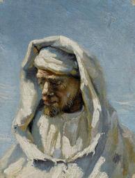 Keywords: Frank Buchser - Porträt eines Beduinen.jpg Artwork Creator Frank Buchser Bildnis eines Beduinen century 19 oil canvas masonite cm 22 6 16 9 object history Private collection Solothurn credit line Oben rechts in die nasse Farbe monogrammiert F B accession number 1 http //www arcadja com/auctions/en/private/buchser_frank/artworks/4201/0/ Galerie Koller via ARCADJA auction results<br/>http //www kollerauktionen ch/de/asp/search asp pg 1 ps 5000 st D sale_no Z32++++ Galerie Koller 27 06 2014 Los 3031 PD-old-100 Frank Buchser Portrait paintings of men at bust length 19th-century portrait paintings Orientalist paintings Bedouins in art Images from Koller Auktionen Ž |