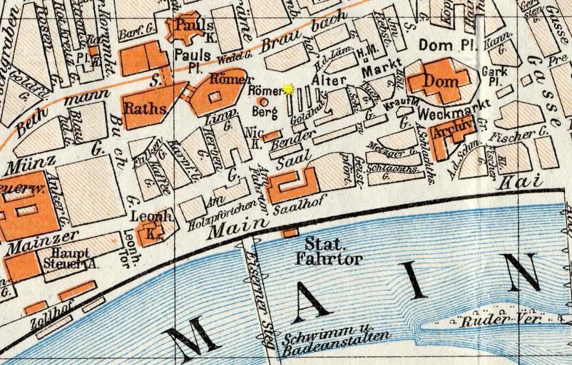 | Keywords: Frankfurt Altstadt-Position-Grosser Engel.jpg en Frankfurt on the Main Position of the Großer und Kleiner Engel Large and Small Angel as seen on a map of the old town de Frankfurt am Main Lage des Großen und Kleinen Engels auf einer Karte der Altstadt Meyers Großes Konversations-Lexikon Ein Nachschlagewerk des allgemeinen Wissens Sechste gänzlich neubearbeitete und vermehrte Auflage Bibliographisches Institut Leipzig und Wien 1902 “10 Bibliographisches Institut 1904 Großer und Kleiner Engel Maps from Meyers Konversationslexikon PD-old Bibliographisches Institut |