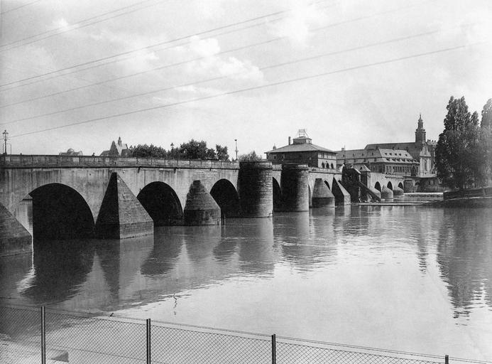 Keywords: Frankfurt Am Main-Fay-BADAFAMNDN-Heft 26-Nr 308-1911-Bruecke von Frankfurt gesehen.jpg Follows de Heft 26 Tafel 308 / Titel auf der Tafel Brücke von Frankfurt gesehen / Originalbeschreibung Zu den Denkmälern der alten Reichsstadt die durch Geschichte und Sage verklärt bestimmt sind für ewige Zeiten im Gedächtnis der Menschen fortzuleben gehört die žrote Mainbrücke Aus Mainsandstein errichtet auf massiven Pfeilern mit kräftigen Vorder- und Hinterköpfen die zwischen dem 5 und 7 Bogen eine architektonisch recht wirksame Ausbuchtung erfahren haben überspannt sie in halbkreisförmigen Bogen aus Quaderschichten den ruhig dahinströmenden Flusslauf Ueber das Alter sind wir nur schlecht unterrichtet Die erste urkundliche Erwähnung der alten Brücke geschieht im Jahre 1222 doch ist mit Sicherheit anzunehmen dass die Erbauung einer Holzbrücke in weit frühere Zeit hinaufreicht Mau kann sich kaum vorstellen dass die ansehnliche Niederlassung um den žSaalhoeff das alte Palatium Ludwigs des Frommen nicht schon sehr bald mit den ausgedehnten Wohnsitzen der Ministerialen in der Sachsenhäuser Gemarkung in direkter Verbindung gestanden hat Allein die Unsolidität des Materials und die rohe Naturgewalt worunter die Menschheit des Mittelalters in ganz anderer Weise zu leiden hatte als wir in unseren Tagen zwangen zu dem kostspieligen Ersatzbau in Stein Doch brachten Mangel an Mittel wie auch die Schwierigkeit geeignete Arbeitskräfte zu finden das monumentale Werk nur langsam voran Man fundierte die Pfeiler unmittelbar mit Hülfe von eichenen Schwellenrosten auf die Flusssohle die nicht etwa wie irrtümlich angenommen wird aus Tonschiefer sondern aus blauem Cyrenenmergel besteht der bei der verstärkten Strömung zwischen den Pfeilern den wachsenden Auskalkungen der Sohle nicht genügenden Widerstand entgegensetzt So wird denn im Laufe des 13 und 14 Jahrhunderts wiederholt von ausgeführten Steinarbeiten an Pfeilern und Schwibbogen berichtet Auch für König Heinrich den Sohn Friedrichs II bildete die Erhaltung der Brücke im Interesse des Reiches einen Gegenstand schwerer Sorge Der aus politischen Gründen vor allem den Städten wohlgesinnte junge Fürst verlieh im Jahre 1235 ein Privilegium zur halben Nutzung der Münze und zum Bezug des zur Reparatur der Brücke nötigen Holzes aus dem Reichswalde Auf das höchste bedroht muss aber die Erhaltung der Brücke um das Jahr 1300 gewesen sein Anders hat es keinen Sinn dass fünfzehn italienische Bischöfe einen Ablass für jene Gläubigen gewähren die zum Bau der vom Hochwasser zerstörten Pfeiler beitrugen Die Brückenbahn bestand zu jener Zeit zum grössten Teil aus Holz und gab dem Bauwerk noch nicht durch die eigene Schwere der gewaltigen Schwibbogen eine Stabilität die allen Unbilden der Witterung bis zum heutigen Tage getrotzt und entgegen den gemachten Einwänden auch für absehbare Zukunft noch trotzen würde Immerhin mag die Brücke im Jahre 1405 wie die Abbildung von dem Schreiber eines Bedebuches zeigt das heutige Aussehen gehabt haben Wenn dennoch aus dem Jahre 1419 berichtet wird dass man an dem letzten Pfeiler gearbeitet habe damit mam fernerhin ždes kostlichen buwes mit holczwercken nit bedarff sondern balken druber leget und druff brückendele so handelt es sich hier um die Beseitigung eines Zustandes den man im Hinblick auf unruhige Zeiten belassen hatte um gegebenen Falles ohne weitere Schwierigkeiten die Verbindung der beiden Flussufer aufzuheben Einen gewissen Schutz gewährte immer noch der über zwei Oeffnungen belassene Brückenbelag aus Bohlen der erst Ende des 16 Jahrhunderts durch Bogen am Sandstein ersetzt wurde Und böse Zeiten zogen für das ehrwürdige Denkmal herauf Im Jahre 1427 sah sich der Rat der freien Reichsstadt genötigt aus Furcht vor den wilden Horden der Hussiten die Bogen der Brücke mit schweren Balken versperren zu lassen Den Einspruch des in seinen Fluss- und Hoheitsrechten sich beschränkt glaubenden Erzbischhofs von Mainz nahm man leicht Etwa 100 Jahre später aber während der Bewegung des Bauernaufstandes der auch in das Maintal hinüber gegriffen hatte pflanzte die ärmere Bevölkerung der Stadt die Fahne der Empörung auf der Brücke auf ohne dass es jedoch zu ernsthafteren Zusammenstössen gekommen war Schlimmer erging es dem Bauwerk im schmalkaldischen Kriege Als das Protestantenheer zur Belagerung der damals in kaiserlichem Besitz sich befindenden Reichsstadt schritt hatte man alle Vorkehrungen zum Schutze des unentbehrlichen Verkehrsweges getroffen Grosse Leinentücher waren auf der Brücke gespannt und die Mühle selbst mit grossen Wollsäcken verstopft um sie während der Zeit der Bedrängnisse in Gang zu halten Der Hauptanschlag zur Zerstörung der Brücke vermittels schweren Geschützes vereitelte der Abschluss des Passauer Vertrages und der damit verbundene Abzug eines Teiles der Belagerungstruppen Kaum weniger ernst war die Lage der Brücke im dreissigjährigen Kriege Auf der Fahrbahn selbst kam es zu heftigem Kampfe und es muss als ein Wunder angesehen werden dass bei dem Geschützfeuer von Ufer zu Ufer wobei 26 Häuser in Asche gelegt wurden die Brücke selbst kaum wesentlichen Schaden erlitt Allein an dem Kruzifix seien wie die Ueberlieferung will noch heute die Spuren von Schwedenkugeln sichtbar Im siebenjährigen Kriege wie im Befreiungskriege hat ein günstiger Stern über der Stadt gewaltet und grössere Verluste ferngehalten Im Sturmjahre 1848 sah die Brücke die letzten kriegerischen Ereignisse die aber Spuren irgendwelcher Art an dem Denkmal nicht hinterlassen haben <br>Wie in Kriegszeiten so stand auch in den Jahren des Friedens die alte Mainbrücke im Mittelpunkt des Interessens der Bewohner Ein gewaltiger Menschenstrom zog jahraus jahrein auf uralten Handelswegen über die Brücke die zur Lebensader des Rhein- und Main-Gaues geworden war Durch besondere Gesetze geschützt bedrohte man einen jeden der auf der Brücke Streit anfing mit dem Abhauen der rechten 