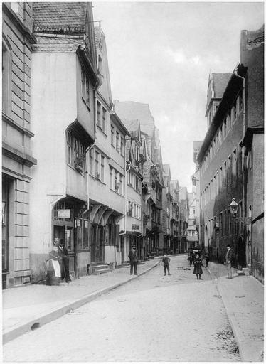 Keywords: Frankfurt Am Main-Fay-BADAFAMNDN-Heft 16-Nr 187-1904-Die Klostergasse-UCSAR.jpg Artwork Creator Carl Friedrich Fay 187 The Klostergasse Abbey Lane Die Klostergasse früher Predigergasse oder žzu den Predigern geht vom Arnsburger Hof bis zur ehemaligen roten Badstube beim Einhornplätzchen Den alten Namen hatte sie von den Predigermönchen die sich im 13 Jahrhundert dort angesiedelt hatten Auf dem vorliegenden Bilde ist ein Teil der heutigen Klostergasse von der Battonstrasse bis zu ihrer Ausmündung beim Einhornplatz sichtbar Sie bietet meist noch das Aussehen einer Strasse an der seit mehr als hundert Jahren keine Änderung vorgenommen wurde; nur links zeigt sich das Stück eines Neubaues während rechts noch das alte Gebäude der Rosenberger Einigung sichtbar ist von der ein anderer Teil auf die Stätte der dahinverlegten Annaschule hinweist ca 1904 technique collotype dry plate size cm 21 49 15 69 unknown Private collection Mylius Frankfurt am Main object history credit line Uncropped semi-automatically retouched version Unbeschnittene halbautomatisch retuschierte Fassung accession number Carl Friedrich Fay Carl Friedrich Mylius Franz Rittweger Fritz Rupp Bilder aus dem alten Frankfurt am Main Nach der Natur Verlag von Carl Friedrich Fay Frankfurt am Main 1896 “1911 PD-old Bilder aus dem alten Frankfurt am Main Nach der Natur Klostergasse Frankfurt Demolished buildings in Frankfurt-Altstadt 1904 in Frankfurt am Main |