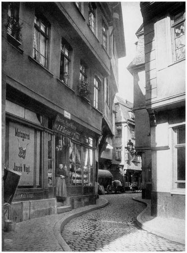 Keywords: Frankfurt Am Main-Fay-BADAFAMNDN-Reprint-214-Hinter dem Laemmchen Eingang vom alten Markt.jpg Artwork Creator Carl Friedrich Fay 258 Hinter dem Lämmchen Behind the Lambkin entrance from the Alter Markt Old Market Diese alte und enge Gasse hat bereits in verschiedenen Heften des vorliegenden Werkes bildlich und textlich Aufnahme gefunden Das vorliegende Blatt zeigt den etwas gewundenen Eingang vom Markt aus rechts im Vordergrund einen Abschnitt des Hauses zu den 3 Römern früher auch Schuhhaus genannt links die Kürschnerlaube das Zunfthaus der Kürschner ihren Namen Laube der auf Säulen gestützten den Zugang zum Hause bildenden Vorhalle verdankend Das zwischen diesen Gebäuden sichtbare Haus zum Lämmchen mit der an der Ecke befindlichen Statue Mariae ist in Heft 2 No 22 dieses Werkes schon abgebildet und besprochen ca 1906 technique print dry plate size cm 19 63 14 5 unknown object history credit line accession number Carl Friedrich Fay Carl Friedrich Mylius Franz Rittweger Fritz Rupp Bilder aus dem alten Frankfurt am Main Nach der Natur Reprint der Auflage Carl Friedrich Fay Frankfurt am Main 1896 1911 Michael Imhof Verlag GmbH Co KG Petersberg 2006 ISBN 3-86568-118-2 PD-old Bilder aus dem alten Frankfurt am Main Nach der Natur Reprint 2006 Markt Frankfurt am Main Hinter dem Lämmchen Goldenes Lämmchen 1906 in Frankfurt am Main 1906 |