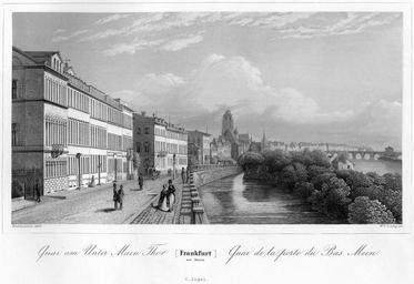 Keywords: Frankfurt Am Main-Jakob Fuerchtegott Dielmann-FFMADIUSAAUNZ-007-Kay am Untermainthor.jpg Artwork Creator Jakob Fürchtegott Dielmann Wilhelm Lang Quay at at the Untermainthor Lower Main Gate Kay am Untermainthor 1845 steel engraving cm 13 32 19 41 Mylius Frankfurt am Main object history credit line accession number Jakob Fürchtegott Dielmann Frankfurt am Main Album der interessantesten und schönsten Ansichten alter und neuer Zeit 2 Auflage Verlag von Carl Jügel Frankfurt am Main 1848 PD-old-100 Frankfurt am Main Album der interessantesten und schönsten Ansichten alter und neuer Zeit 09 Alte Brücke Frankfurt am Main Fahrtor Mainkai Untermainkai Remote views of the Kaiserdom St Bartholomäus Leonhardskirche Frankfurt Rententurm Saalhof