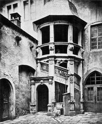 Keywords: Frankfurt Am Main-Roemer-Roemerhoefchen-Alt-Limpurg vor Umbau 1889.jpg Renaissance-Treppenturm des Hauses Alt-Limpurg Scan der Offsetwiedergabe einer Fotografie vor 1891 Der an der westlichen Hofseite des Hauses Alt-Limpurg anschließende Treppenturm aus dem Jahr 1627 ist bis heute erhalten und stellt eines der wenigen ganzheitlichen Bauteile des Römerkomplexes dar dass die massiven Kriegszerstörungen überstand Da das Haus Alt-Limpurg bis 1878 der gleichnamigen Ganerbschaft gehörte trennte eine hohe Mauer die südliche Seite des heutigen Römerhöfchens von der Nordseite mit den Römerwachen die schon seit dem Mittelalter der Stadt gehörte Nach dem Kauf des Hauses Alt-Limpurg durch die Stadt wurde die Mauer obsolet und 1891 niedergelegt das Foto ist also ein rares Zeugnis dieses noch weitgehend mittelalterlichen Bauzustandes Urheberrechtliche Ansprüche dürften aufgrund des Alters erloschen sein PD-old Haus Alt-Limpurg 1889 in Frankfurt am Main Stair towers Stairs in Hesse