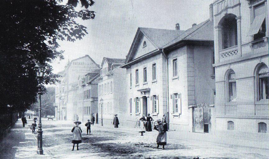 Keywords: Frankfurt-Bockenheim Kurfürstenstraße AltD29.jpg Loggien Fenstergebiel und Fenstergewändern daneben das kurhessische Amthaus Nr 6 von 1837 mit Mittelrisalit auffallendem Frontispiz und Türportal bis zum Gebäude mit der Stern-Apotheke Kurfürstenstraße 22/ Ecke Große Seestraße davor Mehrfamilienhaus mit Wandreklame der Firma Ratazzi May im Hinterhof Am Ende der Straße kann man den Kurfürstenplatz mit Teilen des Brunnenfundamentes erkennen Foto von 1905 Source Author 1905 PD-old History of Frankfurt-Bockenheim Kurfürstenstraße Frankfurt am Main Cc-zero |