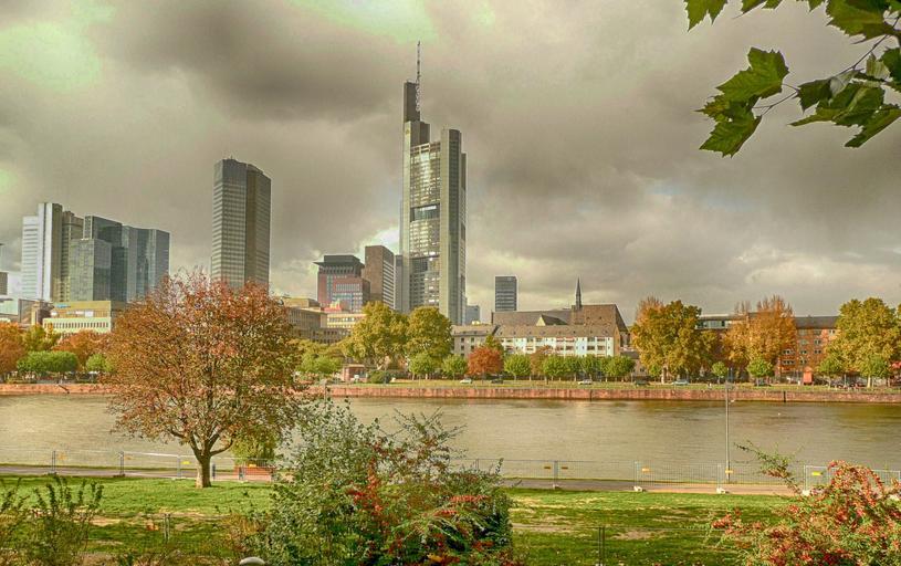 Keywords: frankfurt germany river water fall autumn city cities urban hdr skyline skyscrapers buildings architecture sky clouds trees foliage