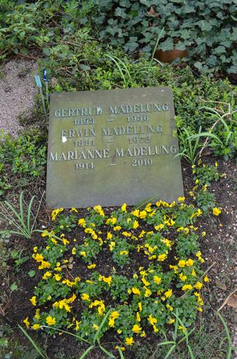 Keywords: Frankfurt, Hauptfriedhof, Grab Erwin Madelung.JPG de Frankfurt Hauptfriedhof Grab Erwin Madelung 2016-04-08 16 08 16 own Karsten Ratzke other versions cc-zero Graves at Hauptfriedhof Frankfurt by name Madelung Graves at Hauptfriedhof Frankfurt Gewann A Erwin Madelung |