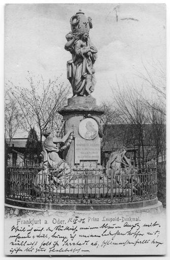 | Keywords: Frankfurt Oder Prinz Leupold Denkmal 1906.jpg Prinz-Leopold-Denkmal in Frankfurt Oder Brandenburg Deutschland Postkarten von vor 1906 Prince Leopold Memorial in Frankfurt Oder Brandenburg Germany Postcard from before 1906 scan before 1906 author Memorials in Frankfurt Oder Leopold Duke of Brunswick-Wolfenbüttel Bernhard Rode Destroyed monuments and memorials in Poland Słubice PD-old | ||||