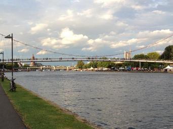 Keywords: frankfurt river bridge river bank walk city historical old