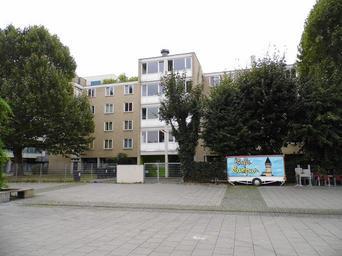 Keywords: Frankfurt, Studentenwohnheim Bockenheimer Landstraße 135.JPG Ferdinand Kramer Erbaut 1956 Konstruktion Stahlbetonskelett mit Sichtbetonpfeilern und Sichtbetonunterzügen Stahlrippendecken Ausmauerung zwischen dem Stahlbetonskelett Verblendung mit Klinkermauerwerk Nutzung seit Sanierung 2012 81 Studenten-Einzelzimmer Träger Studentenwerk Das Gebäude steht seit 2000 unter Denkmalschutz Dieses Studentenwohnheim an der Bockenheimer Warte ist der einziger Bau geblieben der von Kramers anfänglicher Idee einer Campusuniversität nach amerikanischem Vorbild zeugt Einheit von Studieren und Wohnen Der viergeschossige Bau umfasst pro Stockwerk einen Besucherraum eine Teeküche im Mittelrisalit und zwei Waschräume am Ende der beiden Flügel Ursprünglich war das Erdgeschoss des Skelettbaus offen Es diente als Durchgang zum Einstellen von Fahrrädern und hatte zudem neben dem Empfang einen vollverglasten Clubraum sowie eine Tutorenwohnung und eine Wäschekammer Auszug aus dem Einweihungstext Kramers ž ja wo bleibt denn da die Gemütlichkeit Hörte ich immer noch im Geiste Zwischen der Schenke žZum Schlagbaum heute verschwunden dafür Restaurant Extrabreit und der žMexicana Bar längst verschwunden heute Neue Mensa steht dieses Haus so wesensfremd Alte und neue Gemütlichkeit konkurrieren hier um die jungen Leute Die Wände sind erbarmungslos weiß die Betonsäulenträger schalungsgrau nicht einmal abgeschliffen mit Löchern wie die Rinde eines Baumes Weiß ist der Hintergrund Was da ist wird vor ihm kräftiger wenn es überhaupt Kraft hat Das Weiß als Hintergrund wird Ihnen unmerklich ein Gefühl der Freiheit geben Sie wollen ja nicht ewig hier wohnen nicht sich so einrichten dass Sie nachher gar nicht mehr aus Ihrem Fuchsbau herauskommen Gemütlich ist heute nicht mehr der Schlupfwinkel die Bude die gedeckte Farbe die ebenso wie die kaschierte Konstruktion einem vormacht in der Umwelt gäbe es keine Entscheidungen und keine konstruktiven Aufgaben Sich ihnen zu stellen ist dem Gemüt zuträglicher abgedruckt in Bauwelt 17/1959 S 519 2012-09-10 22 27 56 own Karsten Ratzke de Images from Wiki Loves Monuments 2012 DE-HE cc-zero Uploaded with UploadWizard Studentenwohnheim Bockenheimer Landstraße 135 |