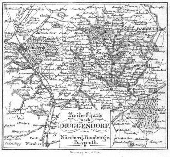 | Keywords: Fränkische Schweiz Muggendorf Karte 1843 001.jpg  Muggendorf von Nürnberg Bamberg u Bayreuth http //bvbm1 bib-bvb de Verlag J A Stein Nürnberg 1843 PD-old-100 Franconian Switzerland History of Franconian Switzerland Maps of Upper Franconia Old maps of Bavaria 1843 in Bavaria Collections of Staatsbibliothek Bamberg |