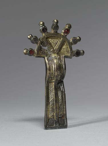 | Keywords: Frankish - Digitated Fibula - Walters 542443.jpg Bow fibulas are also called digitated fibulae due to the radiating knobs that resemble fingers or digits emerging from the headplate The knobs of early 4th-century fibulae were functional and held the springs of the pin At a later date as on this 6th-century example the knobs became purely decorative This fibula has seven knobs alternately inlaid with garnets or glass paste and concentric circles filled with niello a mixture of copper sulphur silver and lead While seven-knobbed fibulae are much less common than the five-knobbed types they are likewise found in northeastern France and the Rhineland They were worn in pairs at the shoulder or as belt ornaments by women with noble status in Frankish society century 6 Early Medieval gilt bronze with garnets or glass paste and niello cm 11 3 6 7 1 6 accession number 54 2443 1374 Carlebach Gallery New York date and mode of acquisition unknown Walters Art Museum 1959 by purchase Museum purchase with funds provided by the S A P Fund 1959 Jewelry - Ancient to Modern The Walters Art Gallery Baltimore 1979-1980 place of origin Rhineland Germany Walters Art Museum license Sösdala-Untersiebenbrunn style Medieval metalwork in the Walters Art Museum Jewellery in the Walters Art Museum Media contributed by the Walters Art Museum needs category review Fibulae with seven-finger grip Julius Carlebach 6th-century works |
