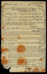 | Keywords: Franklinexpeditionnote.jpg Note found by Francis Leopold McClintock's Expedition team in a cairn on King William Island in 1859 detailing the fate of the Franklin Expedition Written on a standard Admiralty form there are two messages visible First message 28 of May 1847 H M Ships Erebus and Terror Wintered in the Ice in Lat 70°5'N Long 98° 23'W Having wintered in 1846-7 at Beechey Island in Lat 74°43'28 N Long 91°39'15 W After having ascended Wellington Channel to Lat 77° and returned by the West side of Cornwallis Island Sir John Franklin commanding the Expedition All well Party consisting of 2 Officers and 6 Men left the ships on Monday 24th May 1847 ”Gm Gore Lieut Chas F DesVoeux Mate The first message includes an error about the date of wintering at Beechey Island It was written in the field under duress and from memory Its dating discrepancy was noted when it was first discovered and is mentioned in Cyriax and many other books in the article's bibliography This clarification added by Finetooth <span class signature-talk >talk</span> 18 43 26 November 2009 UTC based on discussions on the talk page Second message 25th April 1848 HMShips Terror and Erebus were deserted on the 22nd April 5 leagues NNW of this having been beset since 12th Sept 1846 The officers and crews consisting of 105 souls under the command of Captain F R M Crozier landed here ”in Lat 69°37'42 Long 98°41' This paper was found by Lt Irving under the cairn supposed to have been built by Sir James Ross in 1831 ”4 miles to the Northward ”where it had been deposited by the late Commander Gore in June May is scratched out by the writer 1847 Sir James Ross' pillar has not however been found and the paper has been transferred to this position which is that in which Sir J Ross' pillar was erected ”Sir John Franklin died on the 11th of June 1847 and the total loss by deaths in the Expedition has been to this date 9 officers and 15 men ”James Fitzjames Captain HMS Erebus F R M Crozier Captain Senior Offr And start on tomorrow 26th for Backs Fish River Printed instructions to finder English W<small>HOEVER</small> finds this paper is requested to forward it to the Secretary of the Admiralty London with a note of the time and place at which it was found or if more convenient to deliver it for that purpose to the British Consul at the nearest Port Followed by parallel instructions in French Spanish Dutch Danish and German PD-old History of the Arctic John Franklin's lost expedition |