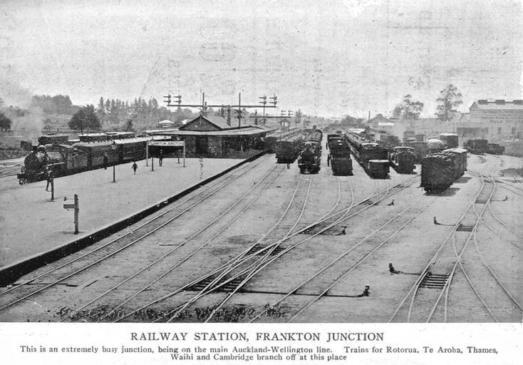 Keywords: Frankton Junction.jpg en Frankton Junction about 1915 1915 E Bradbury Co THE Raglan and Kawhia Districts 1915 page 43 author other versions -37 783297222222 175 28329444444 PD-Art Uploaded with UploadWizard Hamilton New Zealand