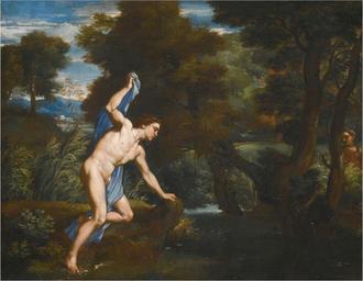 Keywords: Frans de Neve (attr.) - Narcissus and Echo.jpg Attributed to other date between 1650 1704 oil on canvas size cm 33 4 43 2 object history credit line Auctioned at Sotheby's 9 July 2015 London lot 158 accession number http //www sothebys com/en/auctions/ecatalogue/lot 158 html/2015/old-master-british-paintings-day-sale-l15034 PD-old-100 Franciscus de Neve II Narcissus and Echo |