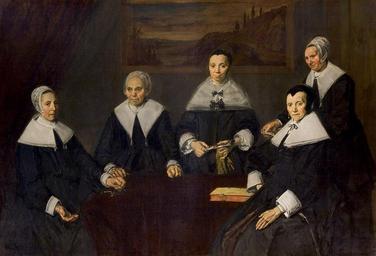 Keywords: Frans Hals - De regentessen van het oudemannenhuis.jpg Artwork Q5971284 creator Frans Hals LangSwitch Regentesses of the Old Men ™s Alms House Haarlem Regentessen van het Oudemannenhuis Haarlem Alternate titles De Hallen Haarlem - Imagedatabase </ref> Regentessen van het Oude Mannenhuis Haarlem 1664 <ref>http //www rkd nl/rkddb/dispatcher aspx action search database ChoiceImages search priref 10892 RKDimages Kunstwerknummer 10892 </ref> <br />Regentessen van het Oude Mannenhuis <ref>Vermeld op het object </ref> 1664 oil canvas cm 170 5 249 5 Frans Hals Museum Haarlem LangSwitch Pendant of Regents of the Old Men ™s Alms House Haarlem Pendant van Regenten van het Oudemannenhuis Haarlem Frans Hals Museum Haarlem OS I-115 LangSwitch see zie File Frans Hals - De regenten van het oudemannenhuis jpg source OS I-116 Other versions <table style background-color EEEFFF > <tr> <td> 500x120px none none span </td> <td valign top > File Frans Hals 019 jpg<br />Version from 10 000 Meisterwerke der Malerei</td> </tr> </table> PD-old-100 LangSwitch References Noten <references /> Group portrait paintings by Frans Hals 1664 Dutch Golden Age portraits of guilds 1664 paintings Regentesses of the Old Men's Almshouse Hals Frans Group portraits with 5 persons Diadem caps Oude Mannenhuis Haarlem Portrait paintings of women in the Frans Hals Museum |