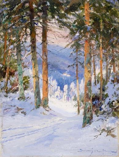 Keywords: Franz Schreyer - Blick auf die obere Schweizer Hütte.jpg oil cardboard cm 32 24 object history credit line accession number http //www van-ham com/datenbank-archiv/datenbank/franz-schreyer/blick-auf-die-obere-schweizer-huette-1 html www van-ham com PD-old-auto-1923 1938 Franz Oskar Bernhard Schreyer Images from Van Ham Kunstauktionen Paintings of country roads in winter |