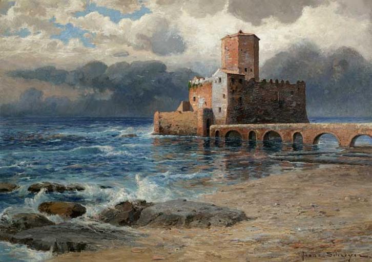 Keywords: Franz Schreyer - Castell Astura.jpg oil canvas cm 86 120 object history credit line Schreyer Franz Oscar Bernhard Landschaftsmaler und Aquarellist studierte an der Akademie in Leipzig und in Dresden Schüler von Friedrich Preller d J bereiste Italien Mitglied der Allgemeinen Deutschen Kunstgenossenschaft Bilder in zahlreichen deutschen Museen<ref>http //www auktion-bergmann de/ufItemInfo aspx a_id 83 i_id 257502 ShowTop 100 www auktion-bergmann de - Franz Schreyer Castell Astura</ref> accession number http //www auktion-bergmann de/ufItemInfo aspx a_id 83 i_id 257502 ShowTop 100 www auktion-bergmann de reflist PD-old-auto-1923 1938 Franz Oskar Bernhard Schreyer Torre Astura Nettuno Images from Auktionshaus Bergmann Lazio in art Historical images of Nettuno Italy |