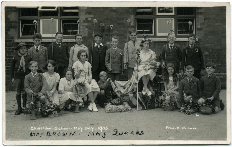 Keywords: Fred C Palmer Chiseldon School 1933 001.jpg 1933 postcard of Chiseldon School near Swindon Wiltshire England showing a group of school children dressed for May Day celebrations It is one of a set of seven postcards from the 1930s showing children from the same school on May Day There is a May Queen; also Brownies Cubs Scouts and Girl Guides This is the only annotated print in the set On the front it says May Brown May Queen On the back it says May as May Queen and marked with a X is Nellie's Boy There is a cross marked above the May queen and above the boy on her right The photographer was Fred C Palmer of Tower Studio Herne Bay Kent ca 1905-1920 and of 6 Cromwell Street Swindon ca 1920-1936 He is believed to have died 1936-1939 This print has darkened with age but it would be inappropriate to adjust the brightness because detail e g on white dresses would be lost Border The remaining border of this image is important for researchers of this photographer Some photographers trimmed their images more than others and Palmer has a reputation for producing smaller postcards than other early 20th century UK photographers He took his own photos developed them in-house onto postcard-backed photographic paper and trimmed them himself It is worth adding that during hand-developing the border is actively masked with equipment which both crops the picture and causes the white frame or border to appear on the paper This frame is part of the design and is one of the reasons why the quality of Palmer's work is so interesting and why there is an article and category for him on English Wiki Researchers need to see exactly where the edge of the postcard is Thank you for taking the time to read this Scan of original postcard in my possession Marked 1933 Fred C Palmer died 1936-1939 out of copyright File Fred C Palmer Chiseldon School 1930s 001 jpg <br/> File Fred C Palmer Chiseldon School 1933 002 jpg <br/> File Fred C Palmer Chiseldon School 1933 003 jpg <br/> File Fred C Palmer Chiseldon School 1934 001 jpg <br/> File Fred C Palmer Chiseldon School 1934 002 jpg <br/> File Fred C Palmer Chisledon School 1934 003 jpg PD-art-70 Fred C Palmer of Swindon Chiseldon People of Wiltshire School children of the United Kingdom 1st of May in the United Kingdom Women called queens in the United Kingdom Celebration Queens People in 1933 Postcards of schools |