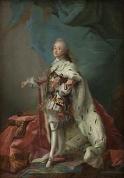Keywords: Frederik V i salvingsdragt small.jpg Artwork Creator Carl Gustaf Pilo da Frederik V i salvingsdragt circa 1750 Oil on canvas cm 69 5 48 5 Institution Statens Museum for Kunst Copenhagen Room 217A object history Bought 1910 exhibition history credit line A much larger version by Pilo is also in Statens Museum for Kunst as no KMS856 accession number KMS3096 http //soeg smk dk/vark asp ObjectId 9115 <gallery>Frederik V i salvingsdragt large jpg</gallery> PD-old-100 cc-by-3 0 Paintings by Carl Gustaf Pilo in Statens Museum for Kunst Frederik V of Denmark 1750c 1750s portrait paintings Male 1750s oil on canvas paintings Portrait 18th-century oil portraits of standing men at full length in ceremonial robes 1750c 18th-century portrait paintings in Denmark 1750c Carpets in portrait paintings 1750c Coronation portraits of Denmark Ermine clothing in art Globus cruciger in portrait paintings 1750c Left hand on hip in portrait paintings 1750c Male shoes in portrait paintings 1750c Portrait paintings of men with crowns on cushions 1750c Portrait paintings of men with swords 1750c Portraits with gloves Portraits with step Royal mantles in portrait paintings 1750c Sceptres in portrait paintings 1750c