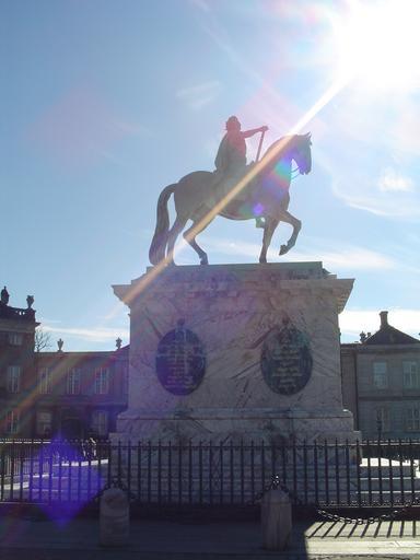 | Keywords: Frederik V status right.jpg Jacques Saly's monumental sculpture of Frederik V of Denmark on horseback at Amalienborg Castle in Copenhagen Denmark Picture by me on 27/3-2005 thue 55 684082 12 593272 region DK_heading SSW Frederik V statue in Amalienborg Palace |