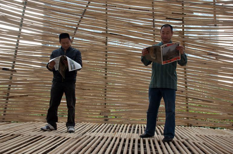 | Keywords: Free newspaper Cicada by Nikita Wu.jpg en Visitors reading the free newspaper Cicada edited by Nikita Wu at the Bug Dome of the WEAK architects in the SZHK Biennale 2009 own Movez 2009 Nikita Wu Bug Dome by WEAK Newspaper readers Sudare Wooden objects Sunshades |