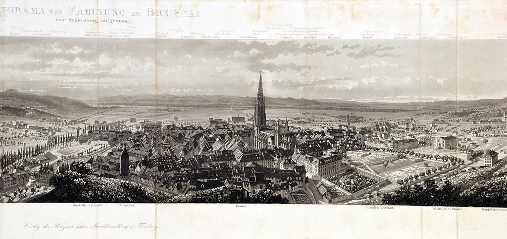 Keywords: Freiburg Panorama c1860 detail1.jpg Panorama von Freiburg und Breisgau vom Schloßberg aufgenommen; Wagner Freiburg o J um 1860 Aquatinta-Leporello 20 2 x 92 3 cm nach F Schmid; Detail http //www zisska de/ Zisska Schauer ~ 1860 after F Schmid PD-old-100 Images from Zisska Schauer History of Freiburg im Breisgau Location not applicable |