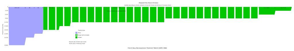 Keywords: French 1968 Treatment Table C.svg en Graphic representation of French Navy Recompression Treatment Table D GERS 1968 2015-11-16 own Pbsouthwood other versions cc-zero Decompression tables Uploaded with UploadWizard