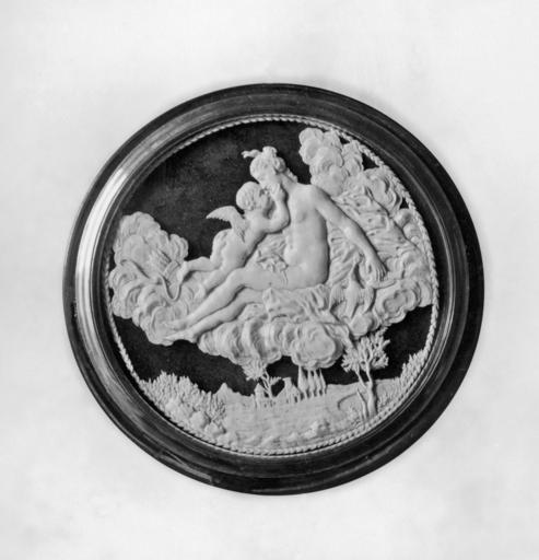 | Keywords: French - Circular Box with Venus and Cupid - Walters 57118.jpg Set in the lid of this box against a blue glass background is an ivory relief representing Venus and Cupid hovering in clouds over a landscape between 1760 1780 gilt-metal tortoiseshell ivory glass cm 2 8 8 accession number 57 118 1849 Henry Walters Baltimore date and mode of acquisition unknown Walters Art Museum Henry Walters Acquired by Henry Walters place of origin Dieppe France Walters Art Museum license Venus and Cupid Media contributed by the Walters Art Museum needs category review Art of France in the Walters Art Museum |