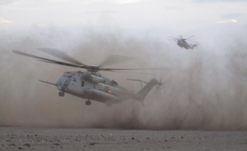 | Keywords: French, Djiboutian, US service members survive the desert 110921-N-MJ000-265.jpg en Two U S Marine CH-53E Super Stallion helicopters land in the Djibouti desert to pick up service members from the French Djiboutian and United States militaries during a 10-day desert combat training course Sept 21 The aerial extraction was part of the 5th French Marine Regiment's desert survival training for 100 French 15 Djiboutian and 40 U S service members The course taught basic survival techniques and field tactics in a desert environment <br>Unit Combined Joint Task Force - Horn of Africa 2011-09-21 U S Navy photo by Lieutenant Mark Jackson https //www dvidshub net/image/471440/french-djiboutian-us-service-members-survive-desert 110921-N-MJ000-265 2011-10-10 09 30 CAMP LEMONNIER DJ PD-USGov-Military-Navy Sikorsky CH-53E Super Stallion Camp Lemonnier Images from DoD uploaded by Fæ |