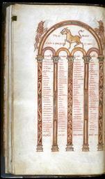 | Keywords: French - Leaf from Gospels - Walters W312V - Open Reverse.jpg Frence late Other date century 10 Medieval ink paint parchment cm 31 18 accession number W 3 12V 17605 Abbey Saint-Benoit-sur-Loîre Fleury late 10th century Léon Gruel Paris prior to 1903 mode of acquisition unknown Henry Walters city Baltimore Walters Art Museum Henry Walters Acquired by Henry Walters 1903 place of origin Fleury France Walters Art Museum license 2D Walters MS W3 - Gospels Canon tables Taurus astrology | ||||