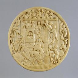 | Keywords: French - Mirror Case with Attack on the Castle of Love - Walters 71169 - Top.jpg The popularity of ivory luxury goods reached its height around 1350 but they were made well into the 15th century Associated with intimacy mirrors were often given as courting gifts A portable mirror consisted of a case in two parts with a polished metal disk fitted inside In this allegorical battle scene knights attack ladies in a castle using catapults and crossbows that launch flowers The ladies also shower their adversaries with flowers dropped from buckets The god of love presides over all A single knight has reached his lady by scaling the wall This scene and those of the knights riding away may be three moments in an elopement narrative The case originally had fantastic animals forming the four corners between 1320 1340 Medieval ivory Diam 5 3/16 x D 3/8 in 13 2 x 1 cm accession number 71 169 24521 Treasury of the Cistercian Abbey of Rein Styria Jacques Seligmann Paris 1928 by purchase Henry Walters Baltimore December 1 1928 by purchase Walters Art Museum Henry Walters Acquired by Henry Walters 1928 Illuminated Manuscripts Masterpieces in Miniature The Walters Art Gallery Baltimore 1984-1985 Medieval Games of Love and War The Walters Art Gallery Baltimore 1995-1996 Images in Ivory Precious Objects of the Gothic Age The Detroit Institute of Arts Detroit; The Walters Art Gallery Baltimore 1997 Highlights from the Collection The Walters Art Gallery Baltimore 1998-2001 The Book of Kings Art War and the Morgan Library's Medieval Picture Bible The Walters Art Museum Baltimore; Academy of the Arts Easton Easton; Princeton University Art Museum Princeton; The Mitchell Gallery Annapolis; Williams College Museum of Art Williamstown 2002 place of origin France Walters Art Museum license French carved ivory mirror cases in the Walters Art Museum 14th-century carved ivory mirror cases Sieges in art Assault on the Castle of Love |