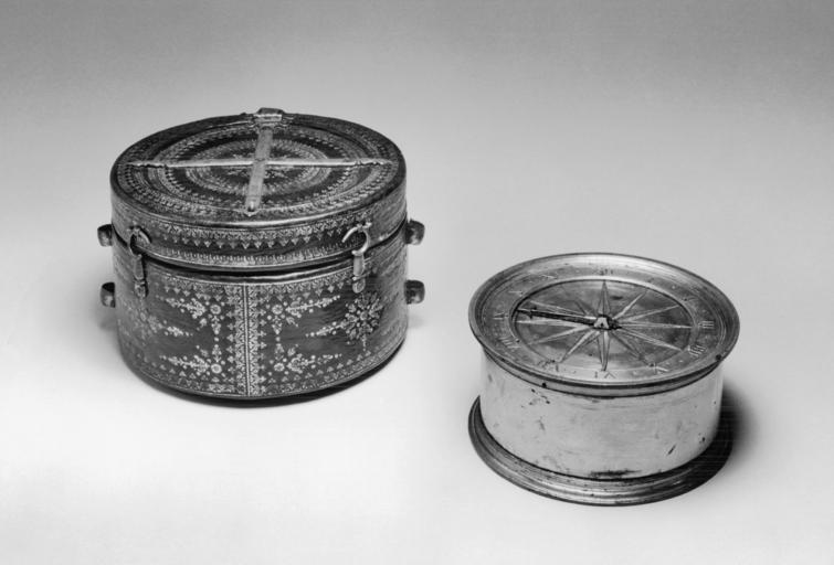 | Keywords: French - Portable Horizontal Striking Clock and Leather Carrying Case - Walters 58216.jpg ca 1580 Renaissance gilt on brass case gilt on brass dial gilt on brass and iron movement gilt on embossed leather gilt on brass wood and silk velvet carrying case cm 8 13 h x d accession number 58 216 29117 Heilbronner Paris Henry Walters Baltimore date and mode of acquisition unknown Walters Art Museum Henry Walters Acquired by Henry Walters French Clocks in North American Collections The Frick Collection New York 1982-1983 place of origin France Walters Art Museum license Renaissance applied arts in the Walters Art Museum Art of France in the Walters Art Museum 16th-century watches Media contributed by the Walters Art Museum needs category review |