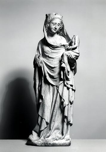 Keywords: French - Virgin and Child - Walters 27271.jpg This delicately carved statue probably comes from the church of Meulan north of Paris where it was intended to be seen in the round as suggested by its fully carved back The Virgin holds out a lily and supports the Child holding a prayer book with her left arm Her mantle is also her veil an elegant combination that unifies the figure in a manner frequently seen in 14th-century art including Gothic ivories ca 1375 Medieval limestone with traces of paint cm 76 26 7 19 1 accession number 27 271 5101 From the church at Meulan near Mantes Seine et Oise Georges Joseph Demotte Paris by purchase Henry Walters city Baltimore Walters Art Museum Henry Walters Acquired by Henry Walters 1910 The International Style The Arts in Europe Around 1400 The Walters Art Gallery Baltimore 1962 Vive la France French Treasures from the Middle Ages to Monet The Walters Art Gallery Baltimore 1999-2000 place of origin Meulan France Walters Art Museum license Medieval ivory in the Walters Art Museum Art of France in the Walters Art Museum Media contributed by the Walters Art Museum needs category review Sculptures of Madonna and Child Vive la France French Treasures from the Middle Ages to Monet |
