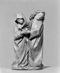 | Keywords: French - Virgin and Saint John - Walters 27274.jpg These mourning figures of the Virgin and St John originally stood beside a crucified Christ Although their bodies physically rest against each other their faces turn in opposite directions as if to indicate the isolation of grief While the simple yet elegant volumes point to an origin in northern France the remarkable eloquence of the emotional expression suggests the influence of the Netherlander Claus Sluter active in the duchy of Burgundy which included parts of present-day Belgium and France Body language is generally more restrained in stone sculpture than in wood sculpture But in the hands of a great artist emotional expression can be conveyed by stone even more powerfully than by the more expansive gestures possible with wood Both The Virgin and St John and the Mourner Walters 27 339 were part of larger sculpture ensembles yet an astonishing mastery of pathos permeates the individual pieces ca 1420 1440 Late Medieval limestone with paint cm 42 8 23 13 5 accession number 27 274 31065 Henri Daguerre Paris by purchase Henry Walters city Baltimore Walters Art Museum Henry Walters Acquired by Henry Walters 1924 The International Style The Arts in Europe Around 1400 The Walters Art Gallery Baltimore 1962 Vive la France French Treasures from the Middle Ages to Monet The Walters Art Gallery Baltimore 1999-2000 place of origin France Walters Art Museum license Medieval art in the Walters Art Museum Renaissance sculpture in the Walters Art Museum Art of France in the Walters Art Museum Media contributed by the Walters Art Museum needs category review Vive la France French Treasures from the Middle Ages to Monet |