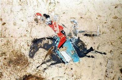 View Original:Fresco of a Horseman from a Han Dynasty Tomb in Sian, Shensi.jpg (550x361)