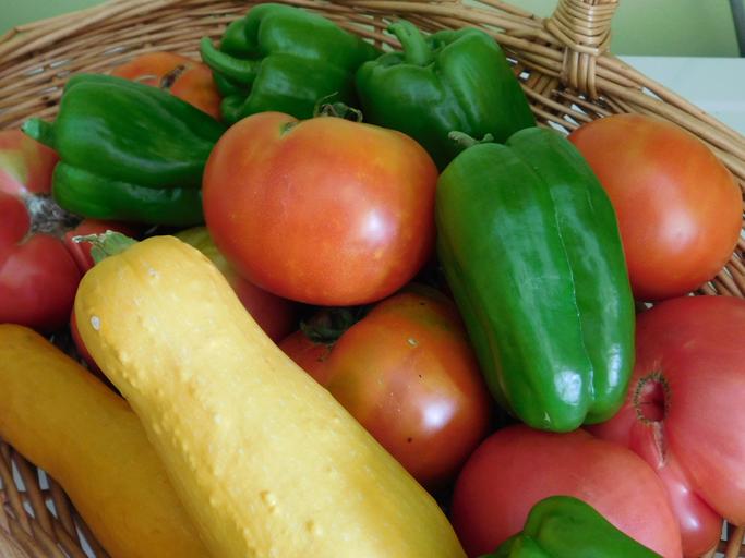 Keywords: fresh vegetables garden healthy food tomato green peppers yellow squash