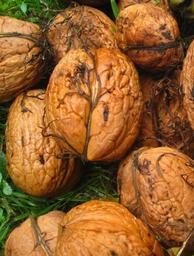 Keywords: fresh walnuts garden harvest nut shell nature brown real walnut harvest time fibrous frisch green time of year juglans nuclear october by the tree fell walnut