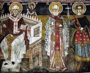 Keywords: Freska od Sv. Nikola Slepčenski 02.jpg mk Ф еска во манасти ската ц ква Св икола во п илепско Слепче century 17 Anonymous-EU PD-Macedonia author other versions PD-Art Paintings in St Nicholas Church Slepče