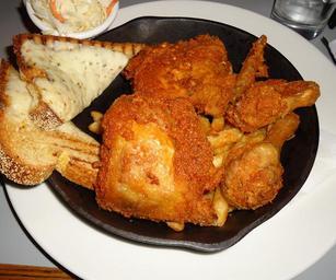 | Keywords: Fried chicken served at a restaurant with french fries.jpg en Fried chicken served on top of French Fries at a restaurant in Summit New Jersey 2013-03-29 06 42 16 own Tomwsulcer cc-zero Uploaded with UploadWizard Fried chicken in the United States French fries in the United States |