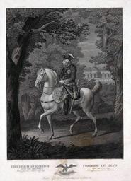 Keywords: Friedrich II00.jpg en Print showing Frederick II King of Prussia on horseback facing left http //www loc gov/pictures/collection/pga/item/2006678300/ Meno Haas 1752-1833 - engraver Friedrich II of Prussia in portraits Meno Haas PD-old-100