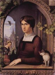 Keywords: Friedrich Overbeck 010.jpg Artwork Creator Friedrich Overbeck de Porträt des Malers Franz Pforr 1810 Oil on canvas cm 62 47 Institution Alte Nationalgalerie de Nazarener The Yorck Project 10 000 Meisterwerke der Malerei DVD-ROM 2002 ISBN 3936122202 Distributed by DIRECTMEDIA Publishing GmbH http //mail wikipedia org/pipermail/wikide-l/2005-April/012195 html other versions PD-old-100 PD-Art-YorckProject Friedrich Overbeck 1810 19th-century portrait paintings in the Alte Nationalgalerie 1810c Franz Pforr 1810s paintings in Germany 1810 oil on canvas paintings Portrait 1810 portrait paintings from Germany Male 19th-century men looking at viewer in art 19th-century oil on panel paintings 19th-century paintings of cats 19th-century oil on canvas paintings in Germany 19th-century oil portraits of men at half length 1810 19th-century portrait paintings in Germany 1810 19th-century portrait paintings with birds 1810 19th-century portrait paintings with cats 1810 Lilies in art Males with cats in art Oil paintings of birds Portrait paintings of men with animals 1810c Portrait paintings of painters 1810c Portraits through a window 1810c Romantic portrait paintings Three-quarter view portrait paintings of men facing left |