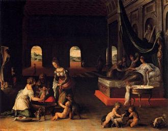 | Keywords: Friedrich Sustris - Birth of a Child - WGA21978.jpg Artwork Creator Friedrich Sustris other date between 1563 1567 Oil on canvas size cm 76 97 Institution Palazzo Pitti object history credit line accession number WGA link 21978 http //www wga hu/art/s/sustris/friedric/birth jpg http //www wga hu/html/s/sustris/friedric/birth html PD-old-100 painting genre Dutch 1551-1600 Friedrich Sustris Galleria Palatina Florence 16th-century oil on canvas paintings in Italy WGA form painting WGA type genre WGA School Dutch WGA time period 1551-1600 16th-century domestic life People in rooms in art Childbirths in art 16th-century way of life in painting Child care 1560s |