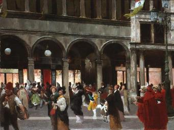 Keywords: Friedrich von Puteani - Der Karneval vor dem Café Florian, Venedig.jpg oil canvas cm 71 94 object history exhibition history credit line PUTEANI / Venice ~ signature / place accession number http //www sothebys com/en/auctions/ecatalogue/2006/19th-century-british-and-continental-paintings-w06703/lot 122 html Sotheby's Olympia 13 July 2006 lot 122 PD-old-auto-1923 1917 DEFAULTSORT Puteani Friedrich von; Genre; Sotheby's 2006 Friedrich von Puteani 19th-century genre paintings Images from Sotheby's |