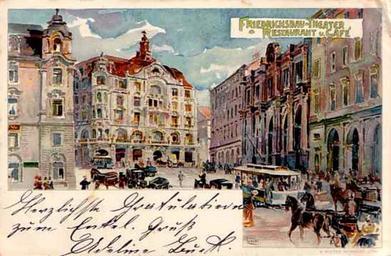 Keywords: Friedrichsbau theater-1903.jpg Stuttgart Friedrichsbau-Theater a variety theatre built 1900 by Bihl and Woltz The complex also included shops offices and a café Destroyed by bombs on 25 July 1944 Finally demolished 1955 in favour of a street Postcard before 1903 Friedrichsbau-Theater Stuttgart/Germany und Centralbahnhof 1903 Source http //www andreas-praefcke de/carthalia/germany/stuttgart_friedrichsbau_old htm PD-old-70-1923 Alter Friedrichsbau Stuttgart Images from Carthalia Postcards of Stuttgart |