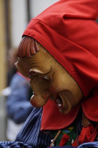 Keywords: friendly profile human smile portrait strassenfasnet fools jump swabian alemannic fasnet move haes mask carnival masquerade costume panel tradition customs haestraeger wooden mask carved custom fig fools guild guild group face