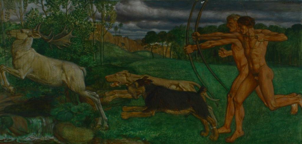 Keywords: Fritz Boehle - Bogenschützen (1903).jpg Fritz Boehle 1873-1916 1903 technique oil canvas cm 45 6 93 5 object history credit line upper right signature and date accession number http //www reiss-sohn de/frame_buch php page 2 lang deu Reiss Sohn 2011 PD-old-auto-1923 1916 Fritz Boehle Hunting in art Paintings of deer 20th-century paintings of dogs Nude men in art 1903 paintings Nude or partially nude people with dogs |