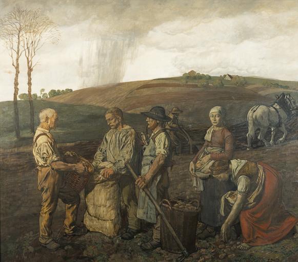 Keywords: Fritz Boehle - Kartoffelernte (1899).jpg Fritz Boehle 1873-1916 1899 technique oil canvas cm 152 170 http //www morgenweb de/nachrichten/kultur/letzte-spuren-einer-sammlung-1 627540 Mannheimer Morgen 28 06 2012 - Letzte Spuren einer Sammlung object history Adolph Bensinger Mannheim by 1916 ; his forced sale Nagel Mannheim 20 February 1940 lot 34 <br/>Dr Hanisch possibly purchased at the above sale <br/>Kunsthandlung J P Schneider Frankfurt am Main by 1972 <br/>Polytechnische Gesellschaft by 1972 <br/>Frankfurter Sparkasse<br/>Estate of Adolph Bensinger in 2012 credit line F Boehle 1899 lower right signature and date accession number http //www sothebys com/de/auctions/ecatalogue/2012/c19th-european-paintings-inc-greek-l12102/lot 43 html Sotheby's London 20 November 2012 lot 43 PD-old-auto-1923 1916 Fritz Boehle Harvest in art 1899 paintings Images from Sotheby's |