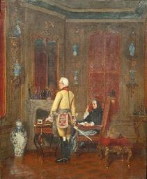 Keywords: Fritz Werner An officer and a woman in an elegant interior.jpg An officer and a woman in an elegant interior; signed lower left ; inscribed verso; oil on canvas; 55 x 45 cm http //www bonhams com/ by 1908 Fritz Alexander Friedrich Werner 1827-1908 PD-old-100 Fritz Werner People in rooms in art Rococo revival paintings Images from Bonhams 18th-century domestic interiors |