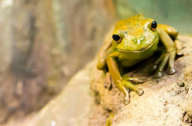 Keywords: frog amphibian wildlife green animal face rock macro tropical exotic small sitting